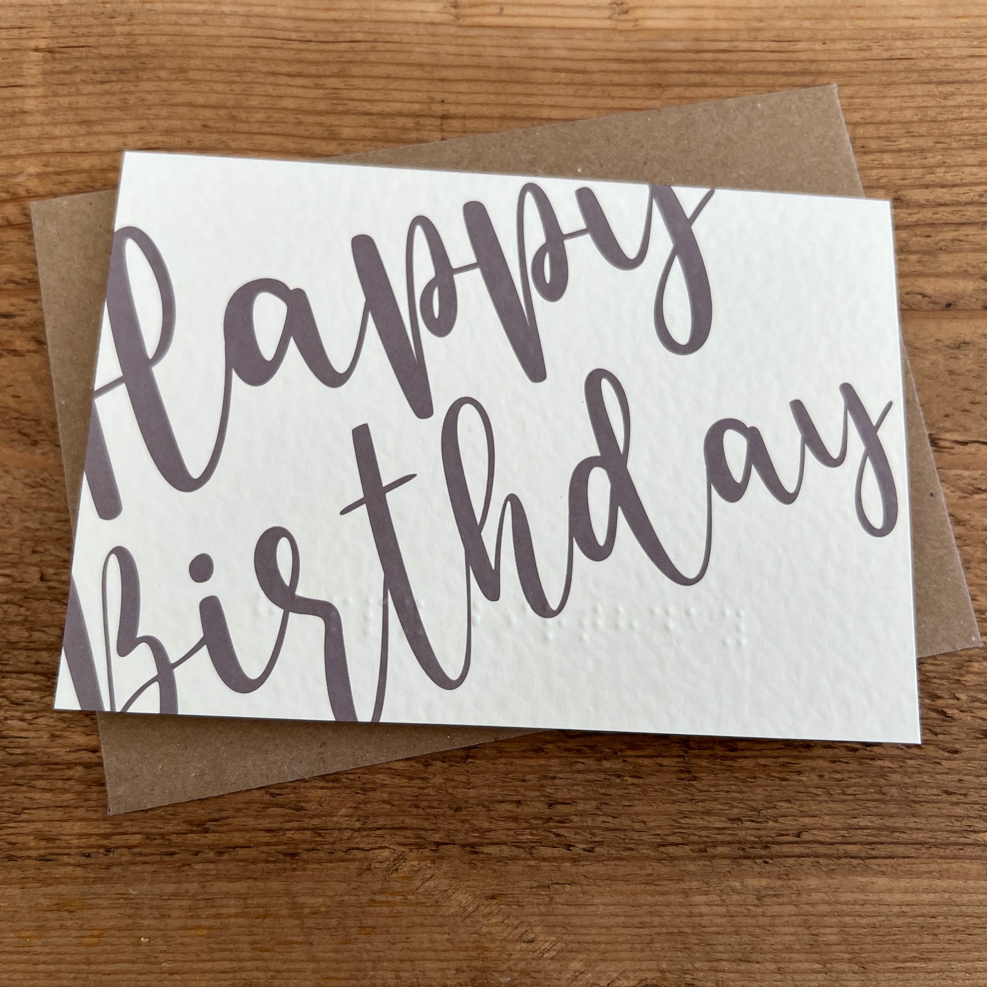 These cards are available with either "happy birthday" or "birthday wishes" in both print and braille - simply choose from the drop down menu which you'd prefer.